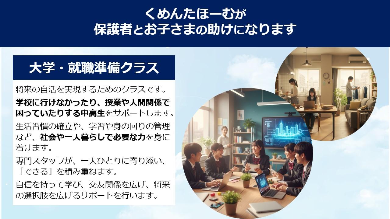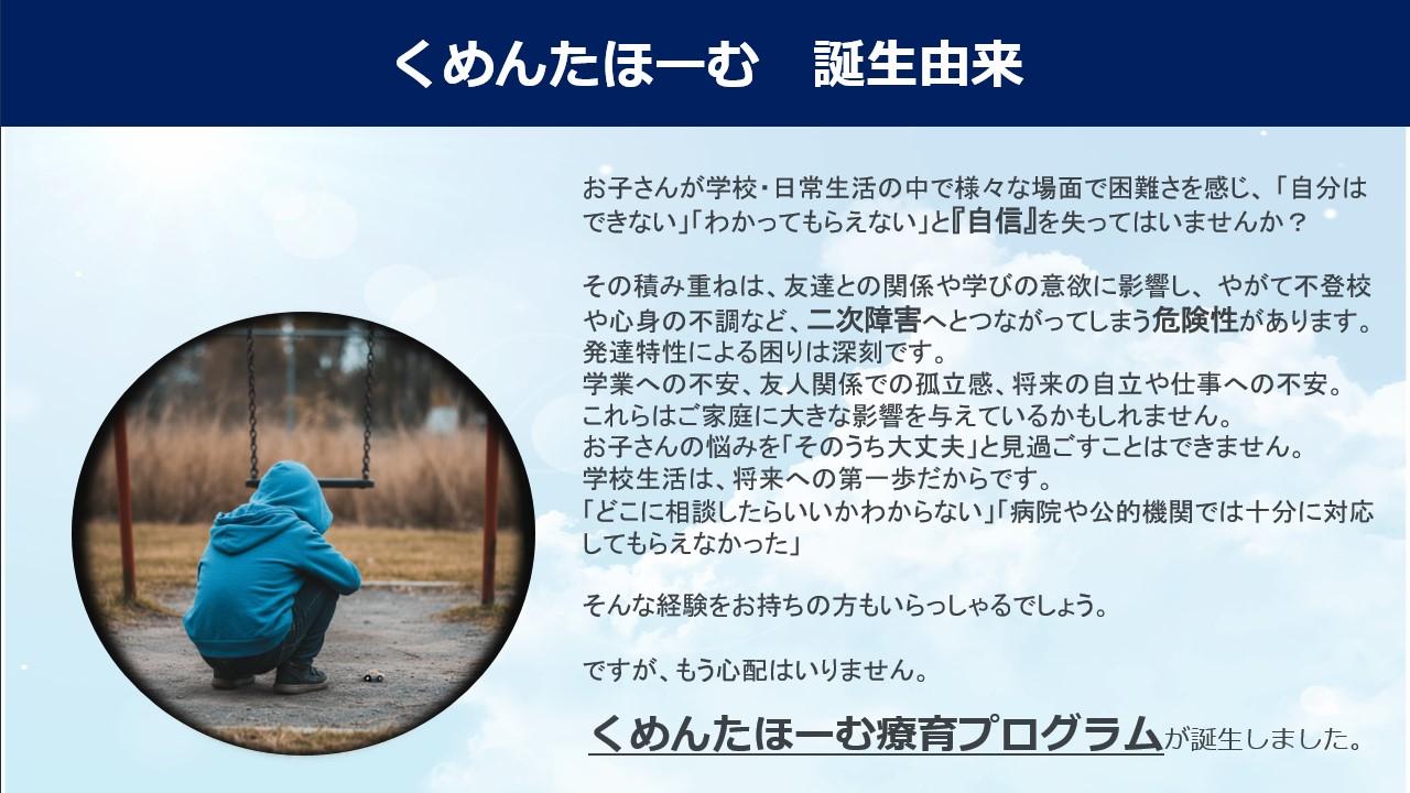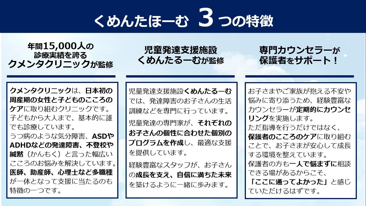 | くめんたるーむ | 児童発達支援事業所として、発達障害を抱えるお子さんの生活技能訓練を行います。 |